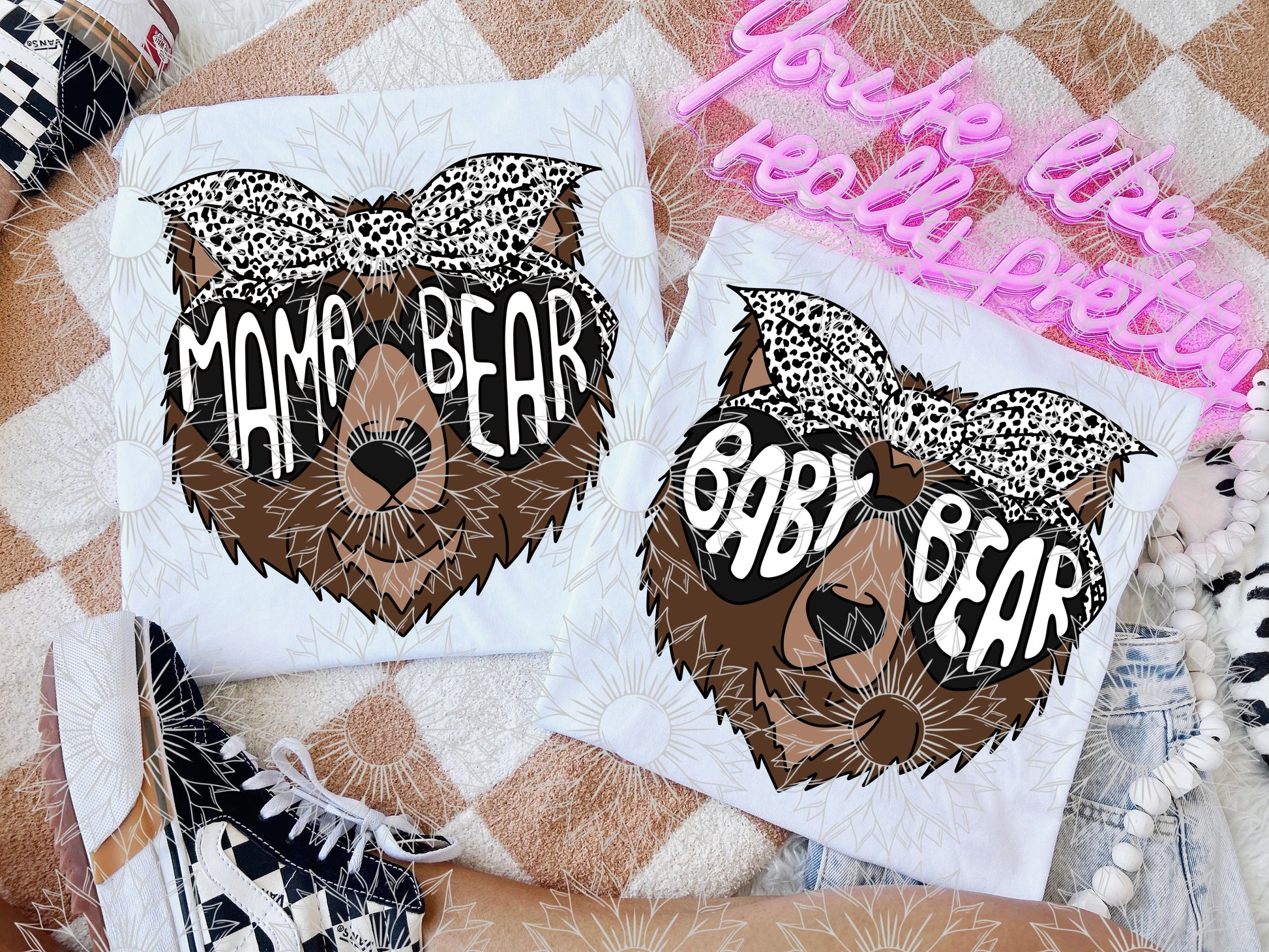 Mama/Baby Bear White Cheetah Print