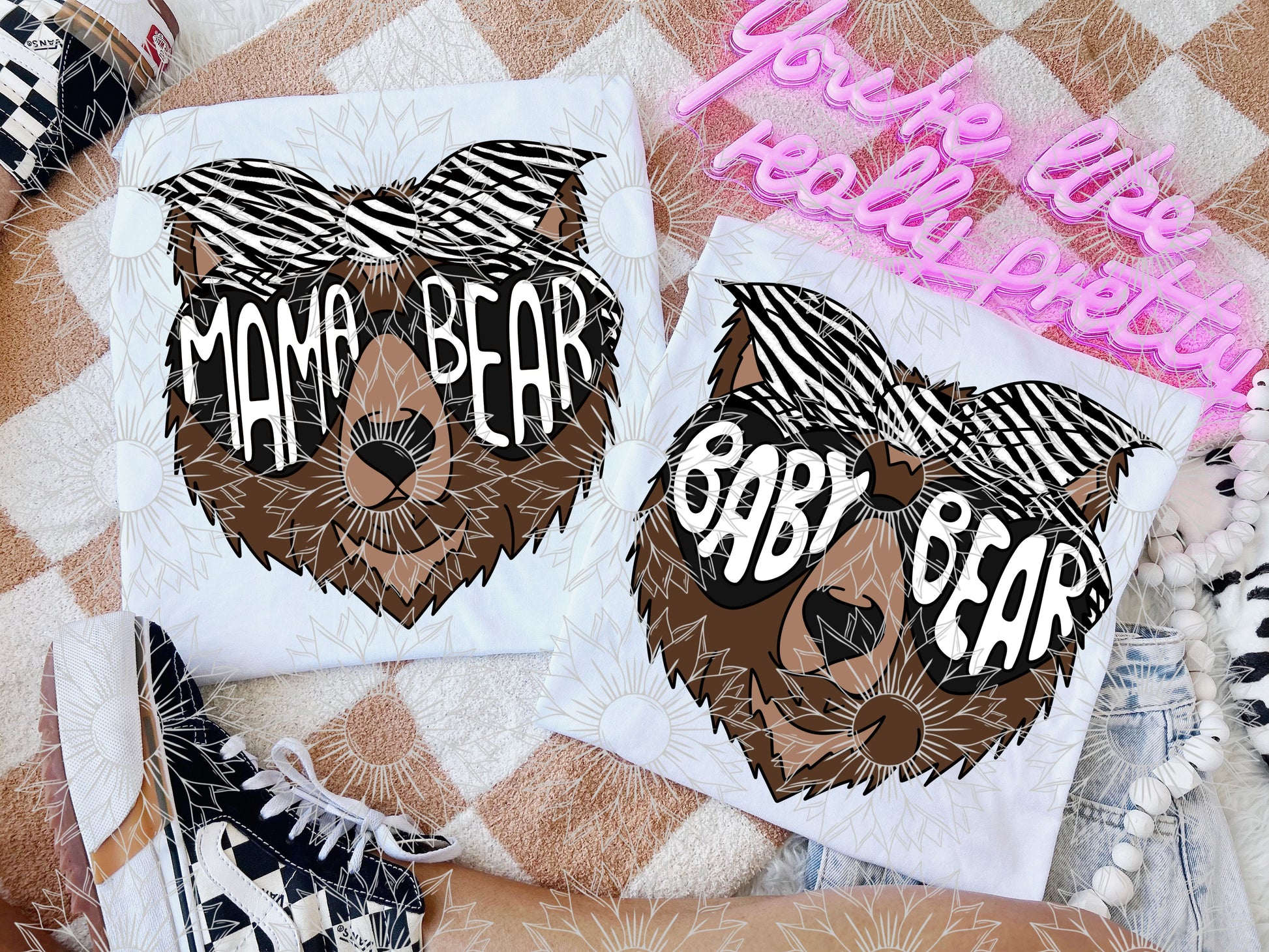 Mama/Baby Bear Zebra Print