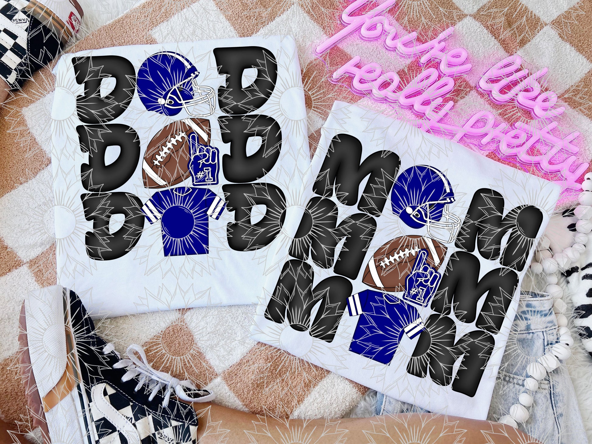 Stacked Football Mom and Dad Navy